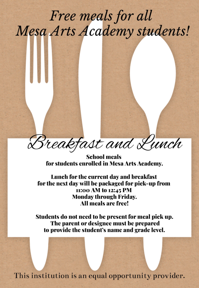 Mesa Arts Academy/Boys & Girls Club of the Valley is able to provide FREE meals for all children 18 and under through a recently approved extension of the USDA summer food service program. Learn more.